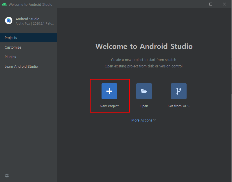 "Create New Project"를 눌러서 안드로이드 개발을 시작~~!!