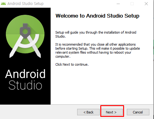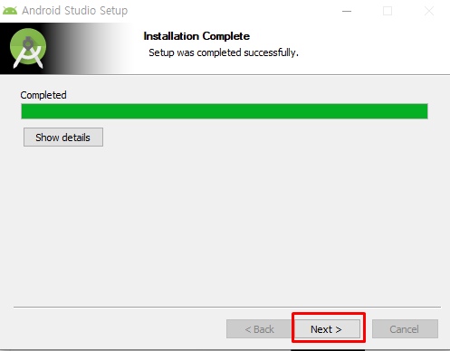 - 당연히 안드로이드 스튜디오를 설치할꺼기 때문에 자동으로 체크 되어있음