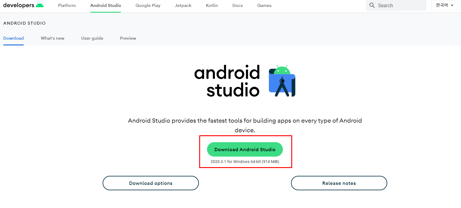 3. Download Android studio 버튼 클릭!
