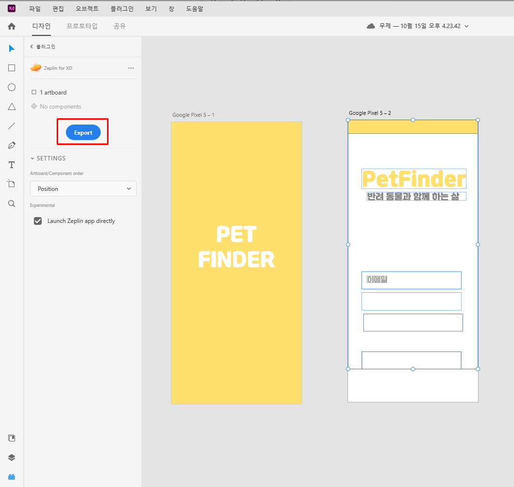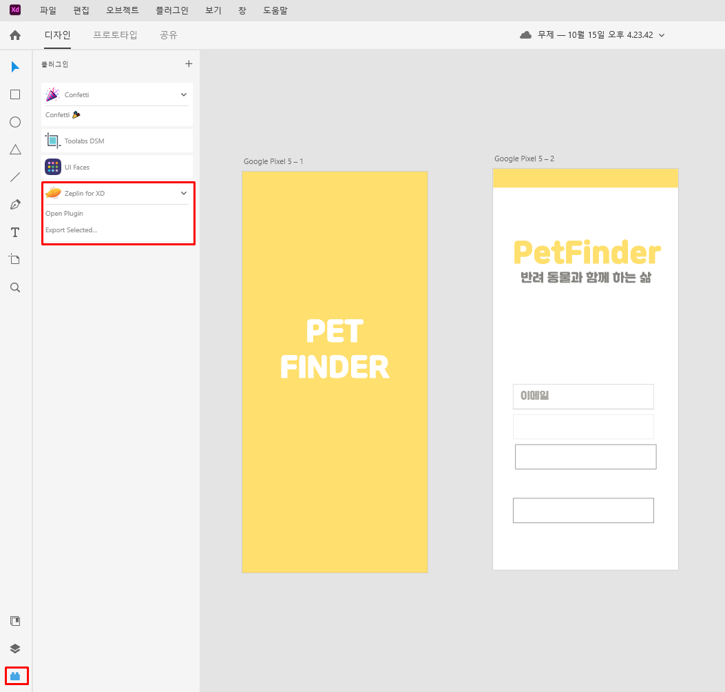 7. Adobe XD로 이동 → 제플린 플러그 설치
