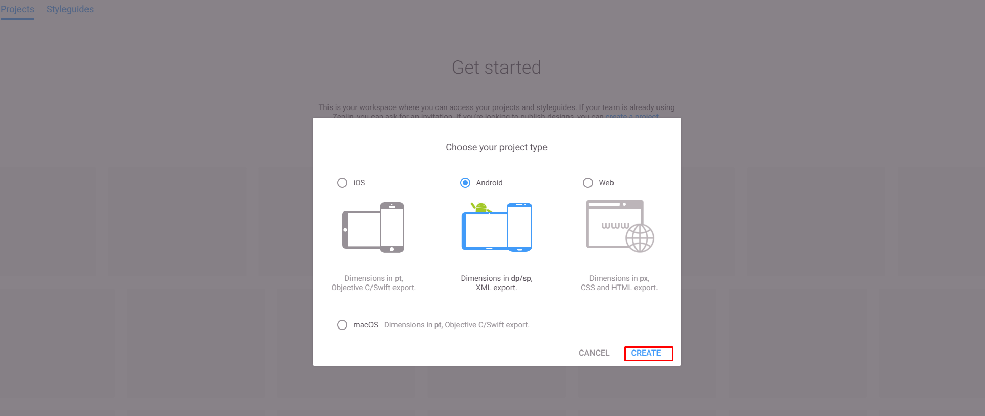 5. Zeplin 프로젝트 생성