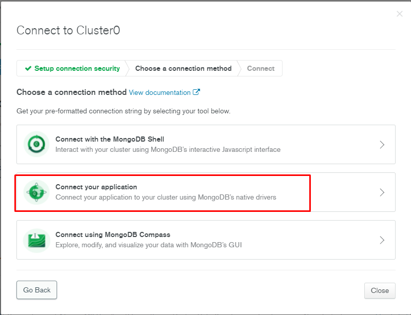 - 상황에 따라 선택, 저는 Conect Your Application 버튼을 눌러 선택