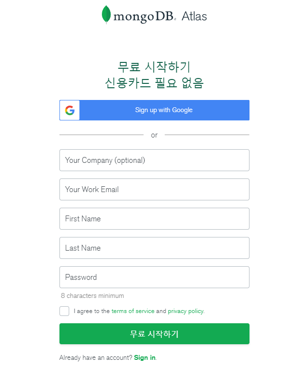 1. MongoDB Atlas 사이트 접속!