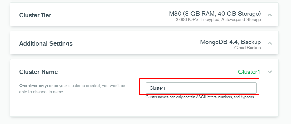 - Cluster Name에 원하는 이름 입력 → Cluster 생성 버튼 클릭