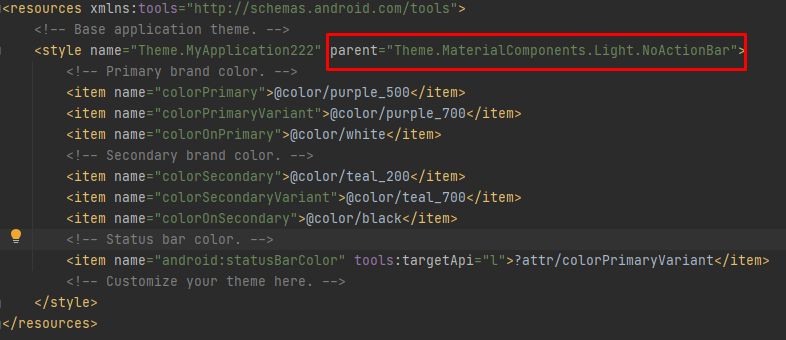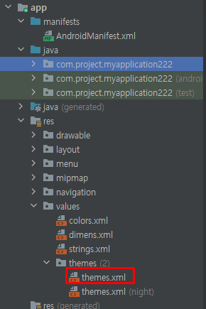 1. app → res → valuse → themes → themes.xml 파일 클릭!