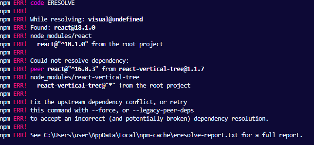 아래 react-vertical-tree 를 설치 하다 에러가 났다!!