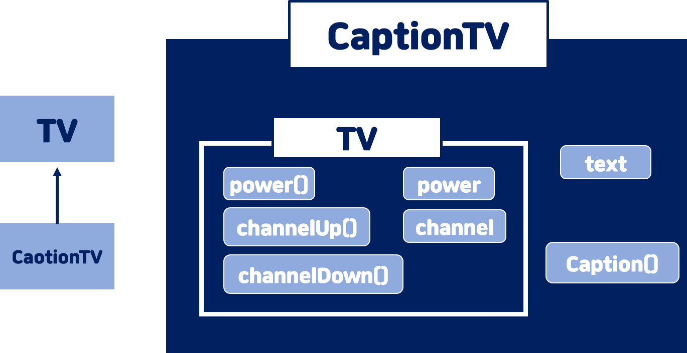 위 그림은 클래스 TV와 CaptionTV는 서로 상속관계이다.