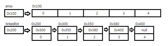 배열은 모든 데이터가 연속적으로 존재하지만 링크드 리스트는 불연속적으로 존재하는 데이터를 서로 연결(link)한 형태로 구성되어있다.