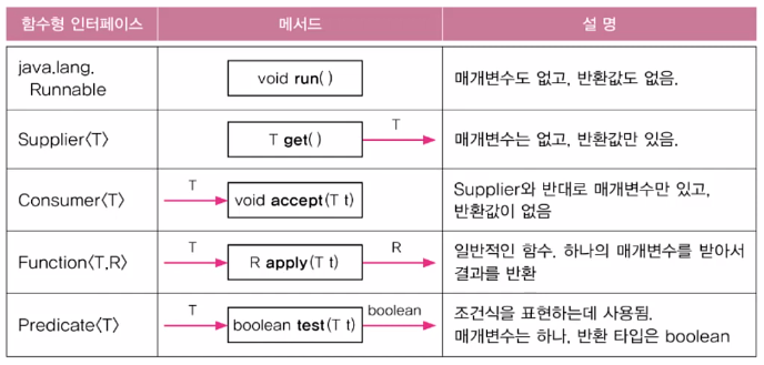 이 메서드를 호출할 때 람다식을 참조하는 참조변수를 매개변수로 지정해야한다는 뜻이다.