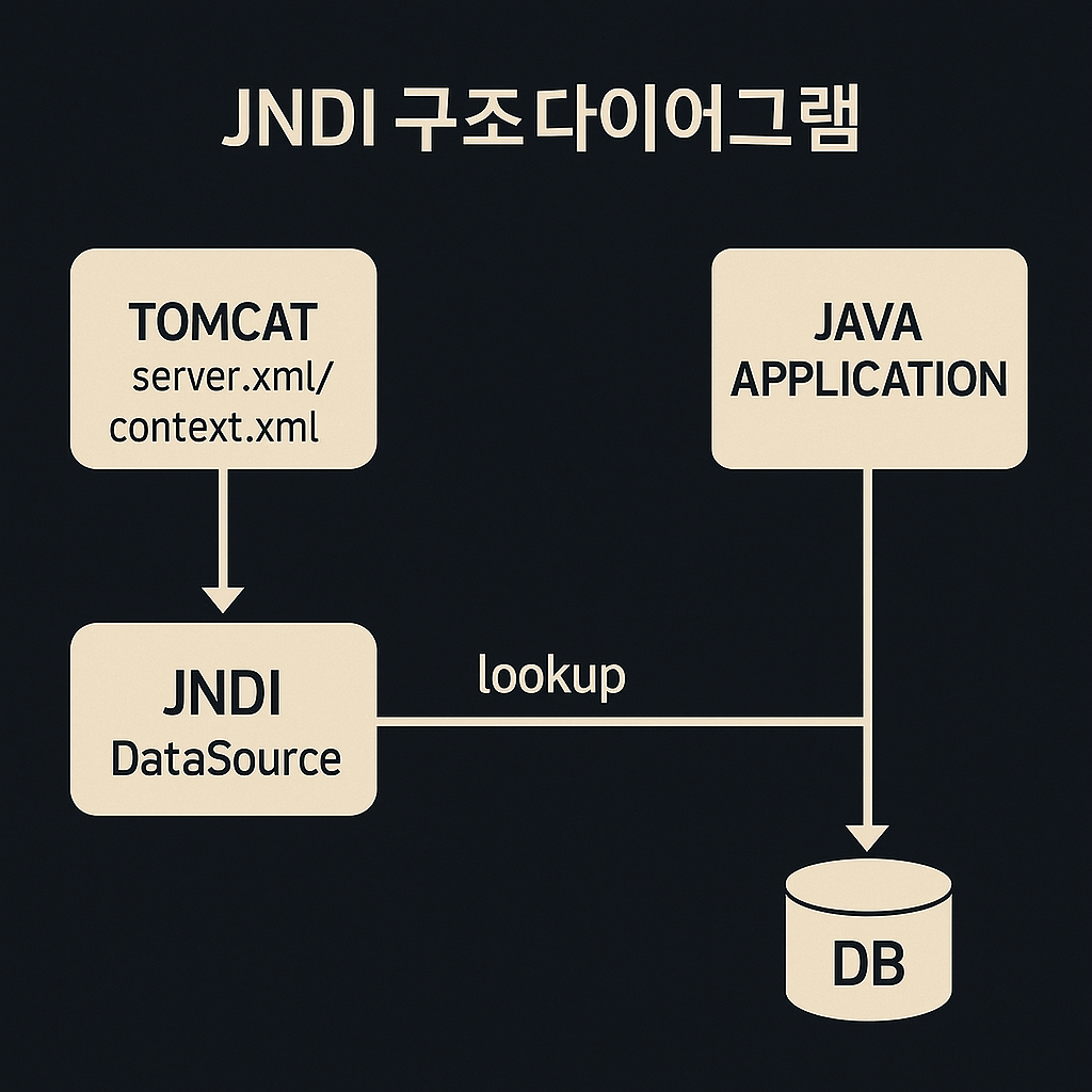 - Java 코드에서 lookup("java:comp/env/jdbc/myDB") 호출 → 등록된 JNDI 리소스를 가져옴